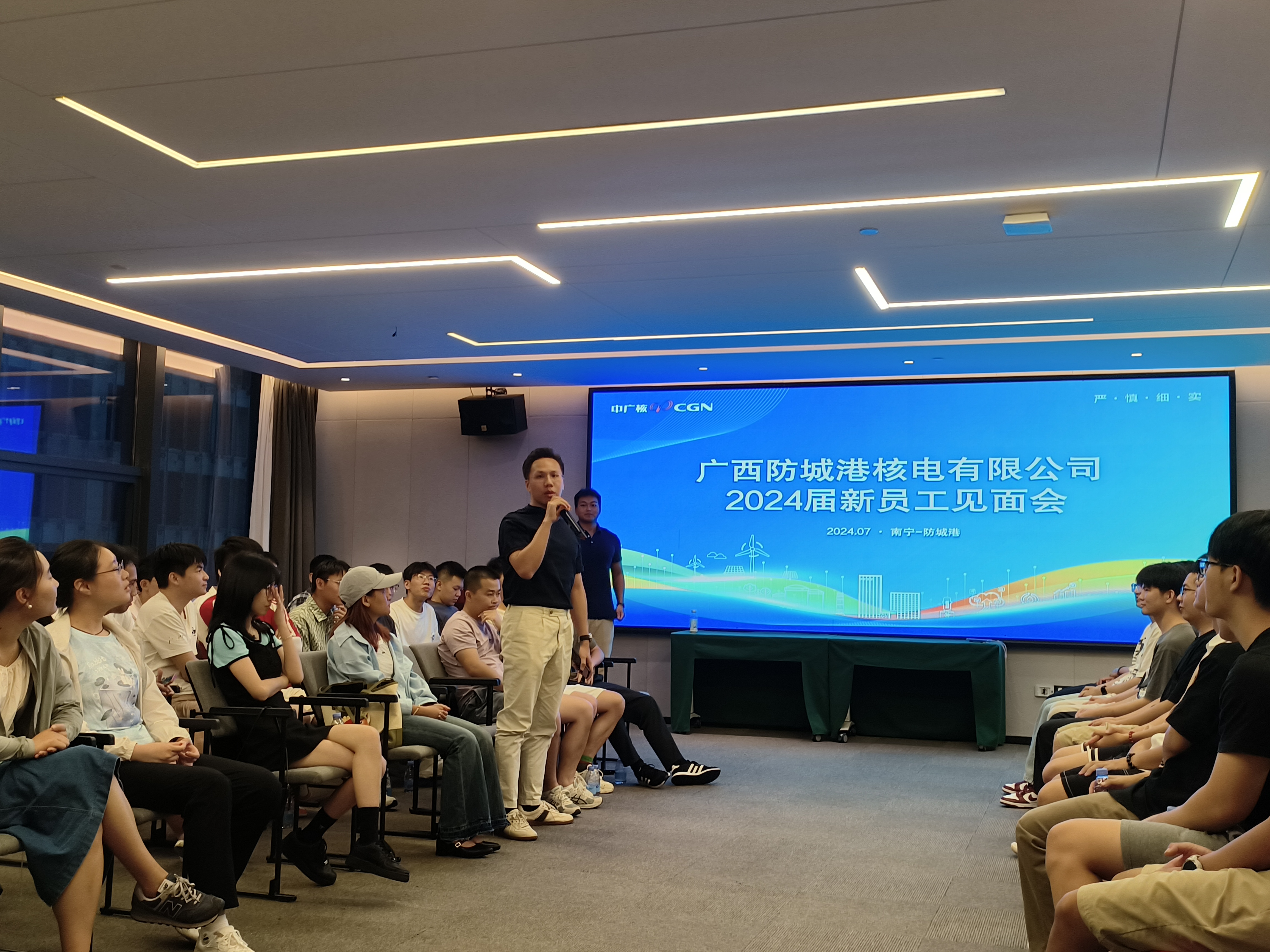 7月8日晚上,人力資源部組織召開2024屆新員工見面會(huì)。見面會(huì)上,各位新員工進(jìn)行了充滿個(gè)性的自我介紹,分享了個(gè)人經(jīng)歷、興趣愛好及加入中廣核的初衷并展望未來,給新同事們留下了深刻印象?,F(xiàn)場氣氛活躍,歡聲笑語不斷,成為了大型“網(wǎng)友面基”現(xiàn)場。