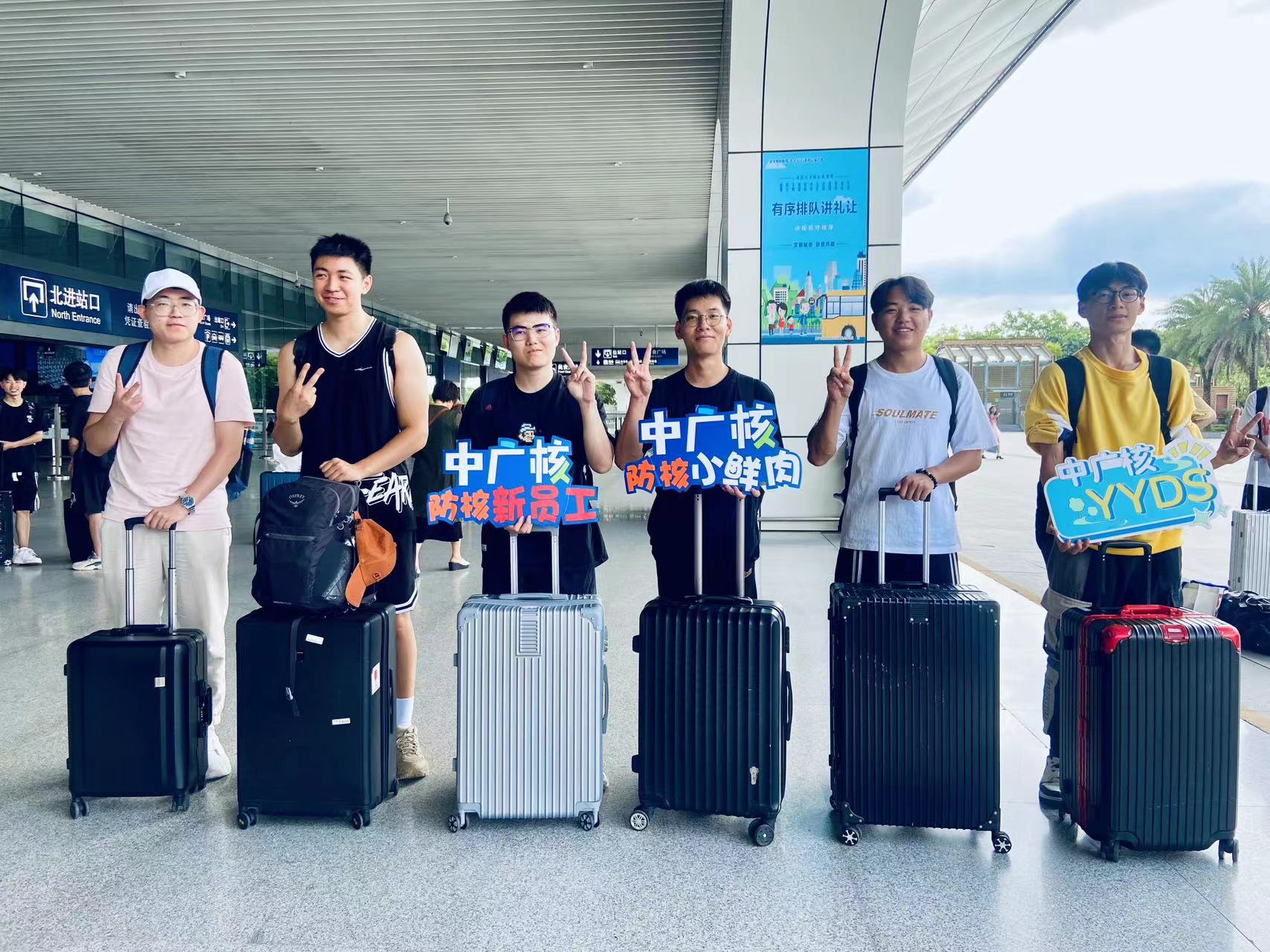 為避免暑日行程勞累,防城港核電為新員工特別提供了專車接站,志愿者在南寧東站和南寧吳圩機(jī)場迎接來自五湖四海的新員工。