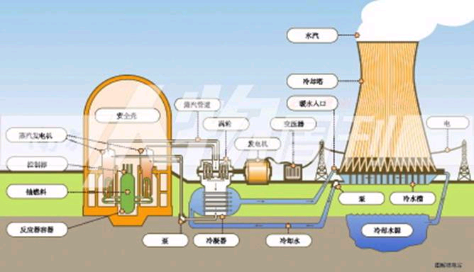 現(xiàn)代的壓水堆核電廠的反應(yīng)堆中,有很完善的措施保證放射性物質(zhì)不會(huì)外泄。核反應(yīng)發(fā)生在一個(gè)鋯合金的包殼內(nèi),鋯合金外面流動(dòng)著一回路的冷卻水,因?yàn)檫@些水幾乎直接跟核反應(yīng)的核心部分接觸,有一定放射性,我們并不利用這些水直接發(fā)電。在蒸汽發(fā)生器中,直接接觸反應(yīng)核心的一回路水與二回路水發(fā)生熱交換,產(chǎn)生蒸汽,推動(dòng)汽輪機(jī)發(fā)電。在發(fā)電機(jī)內(nèi)做完功的蒸汽被外界冷的海水冷卻成水。