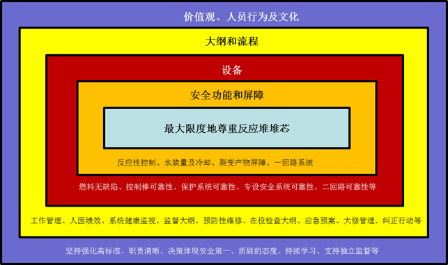 廣西防城港核電有限公司構(gòu)建以確保堆芯安全為核心的縱深防御管理體系。通過(guò)文化和制度管人,通過(guò)大綱和流程管事、管設(shè)備。核安全管理的主要措施包括:安全的設(shè)計(jì)和變更、高可靠性的設(shè)備、有效的組織及良好的人員行為。