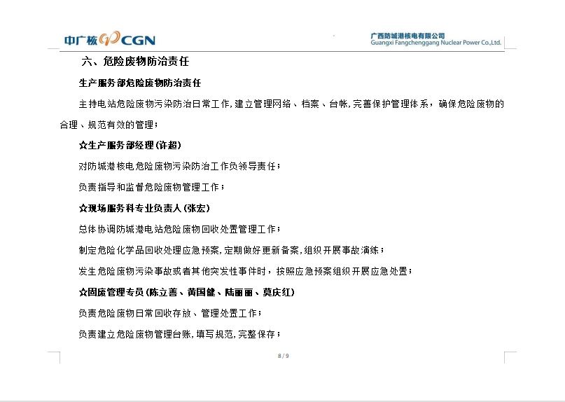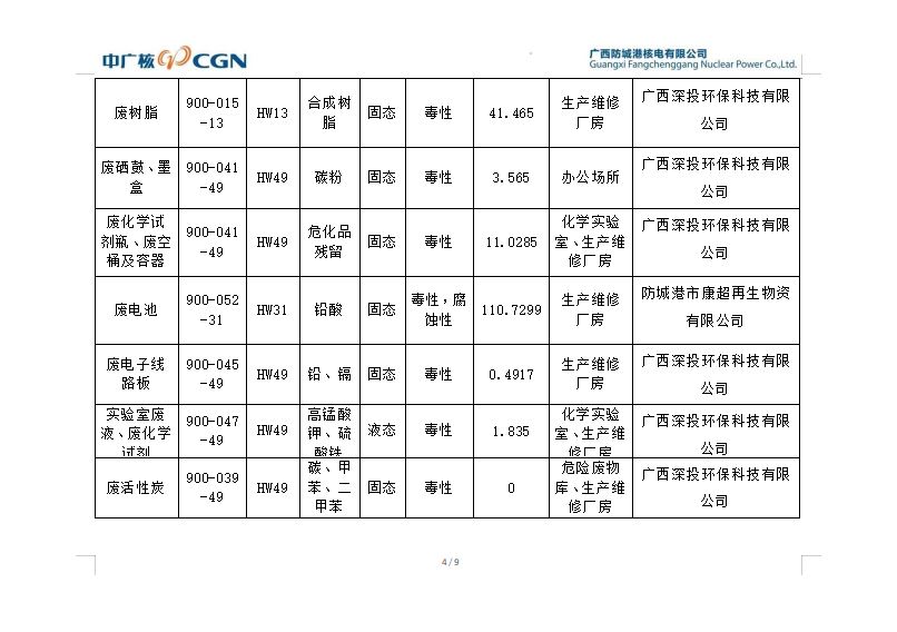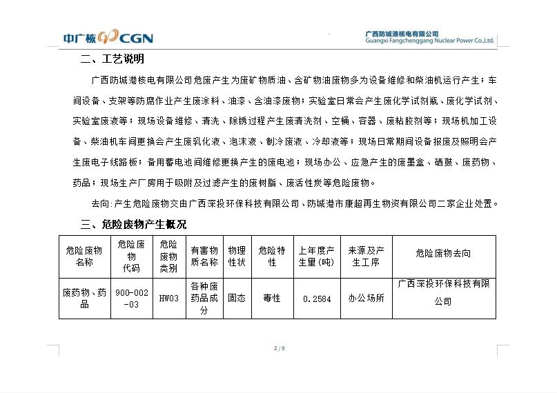 2024年廣西防城港核電有限公司危險(xiǎn)廢物污染防治相關(guān)信息